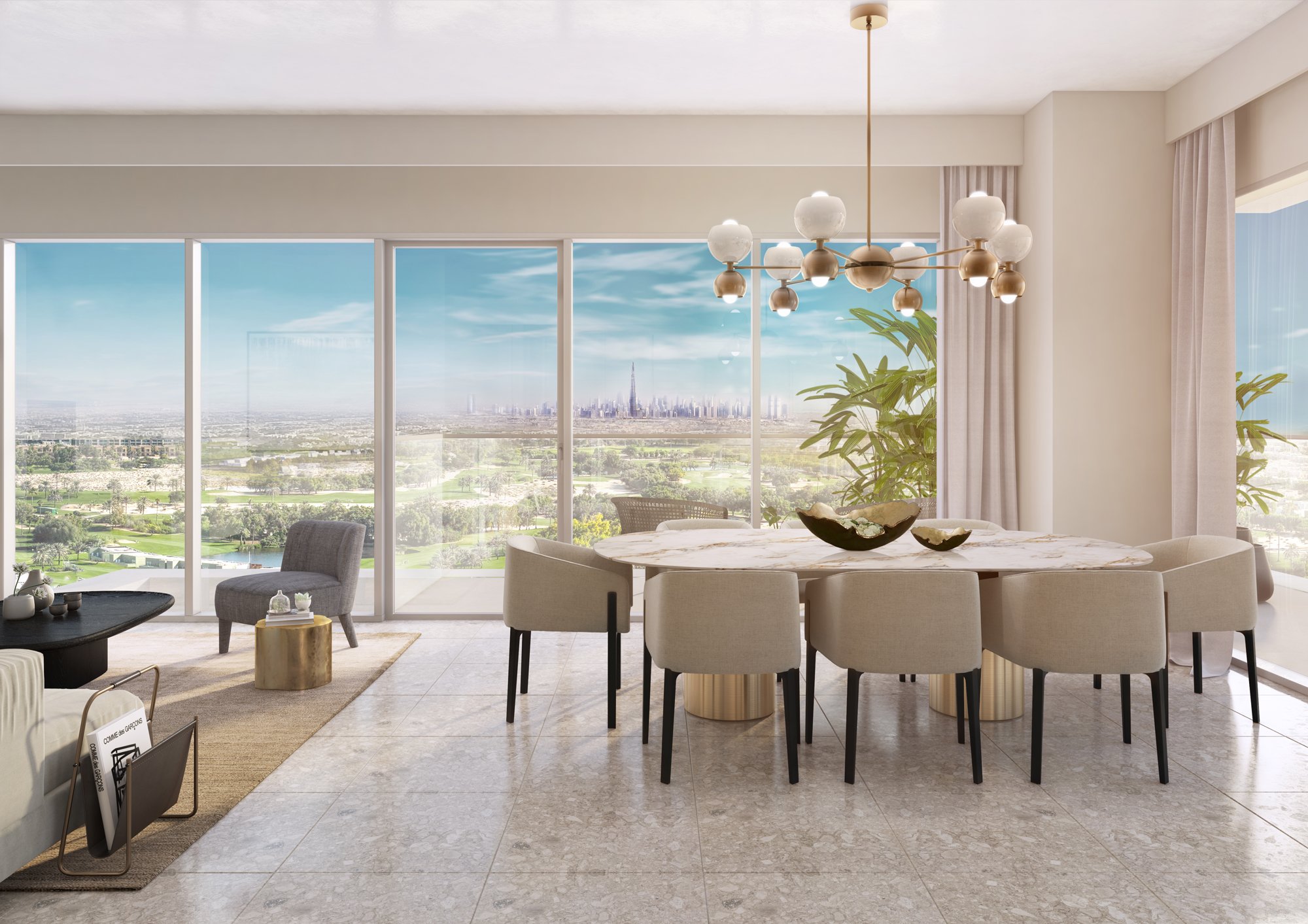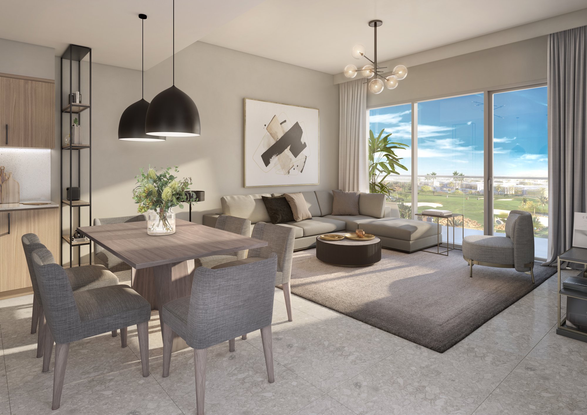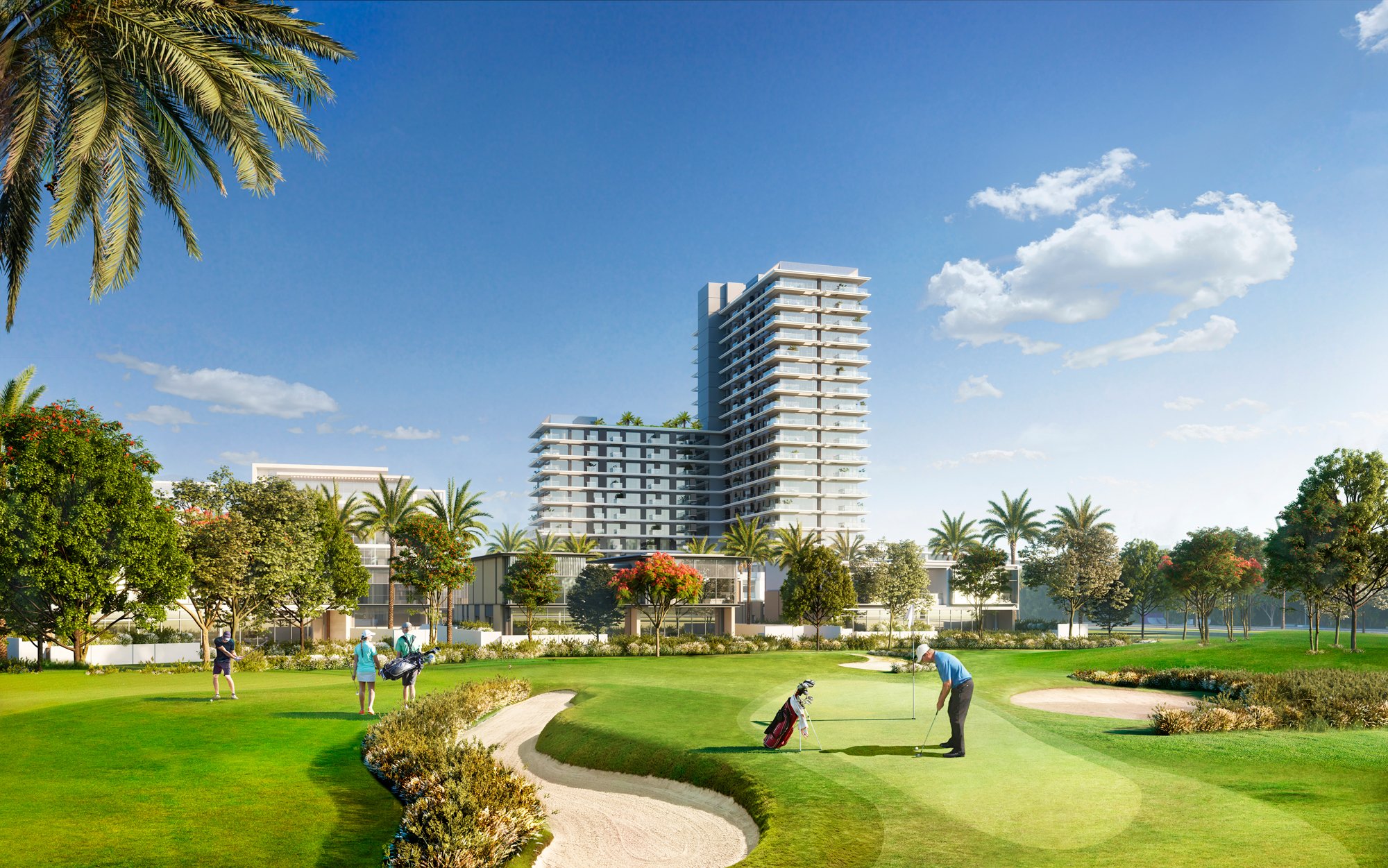Golf Suites is located in one of Dubai's most verdant and prestigious communities. Dubai Hills Estate is an oasis of green parks and golf courses within the developing MBR City. This complex is surrounded by pedestrian zones. Residents enjoy access to a 2.5 km jogging path, as well as other premium amenities and numerous playgrounds. Dubai Hills Estate also boasts the longest cycling route in Dubai, stretching 54 km. The renowned Dubai Hills Golf Club, an 18-hole course with stunning views of Burj Khalifa, is also located here.