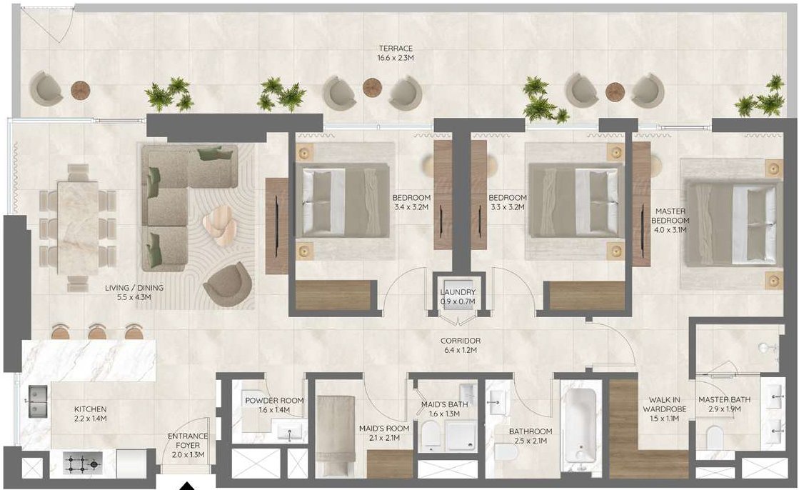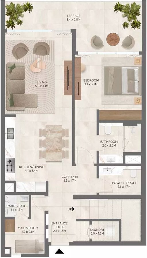 Dubai Hills Estate epitomises premium living, where every detail is designed to create the most comfortable and harmonious atmosphere for its residents. Here, the tranquillity of suburban life coexists with the vibrancy of the city. In this community, you can start your morning with a pleasant stroll along shady alleys or play a round of golf on the picturesque 18-hole course. Moreover, you can enjoy shopping at Dubai Hills Mall in the afternoon, and relax in one of the stylish restaurants with panoramic views of the surrounding landscape in the evening.